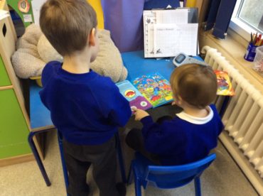 Dinosaur booksWe’ve Ben reading books in the dinosaur museum .