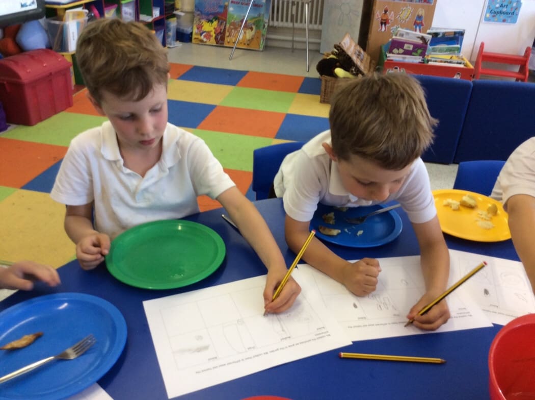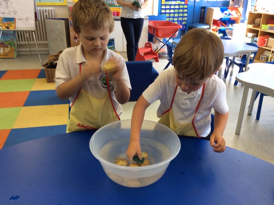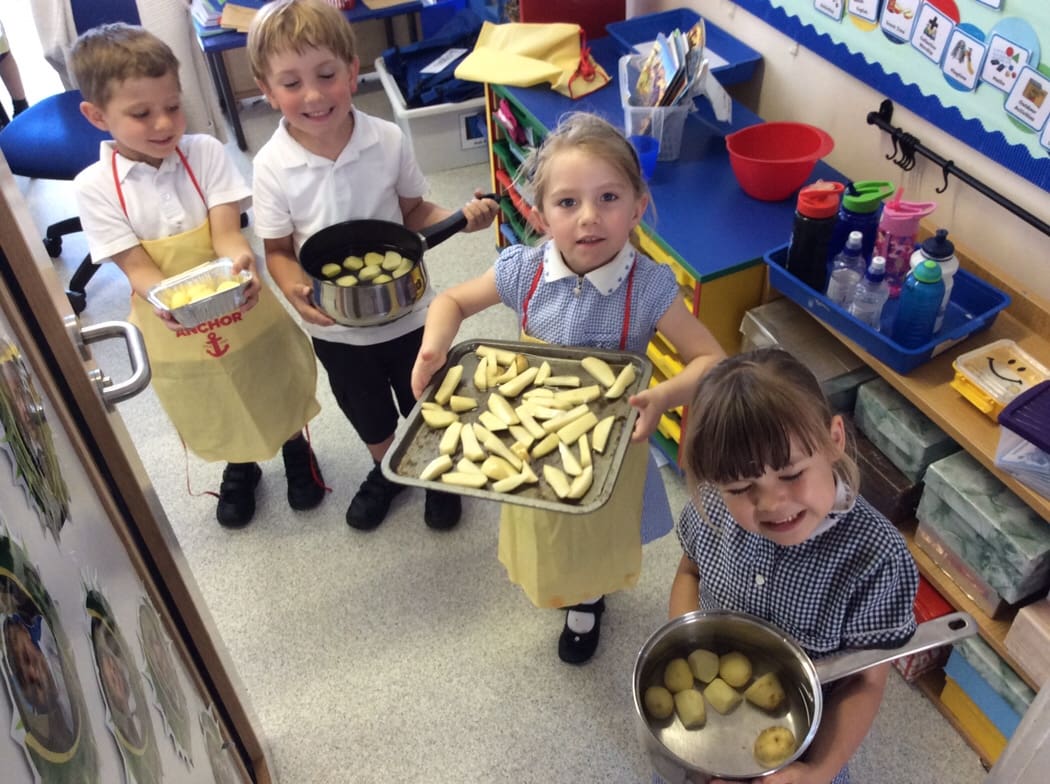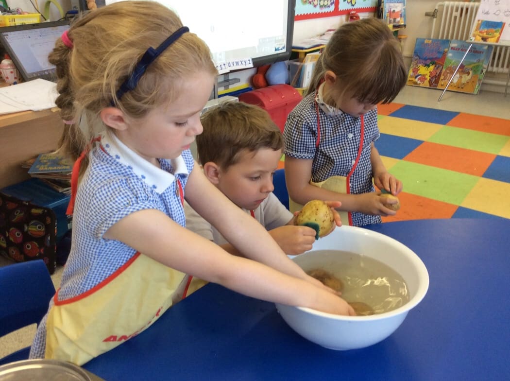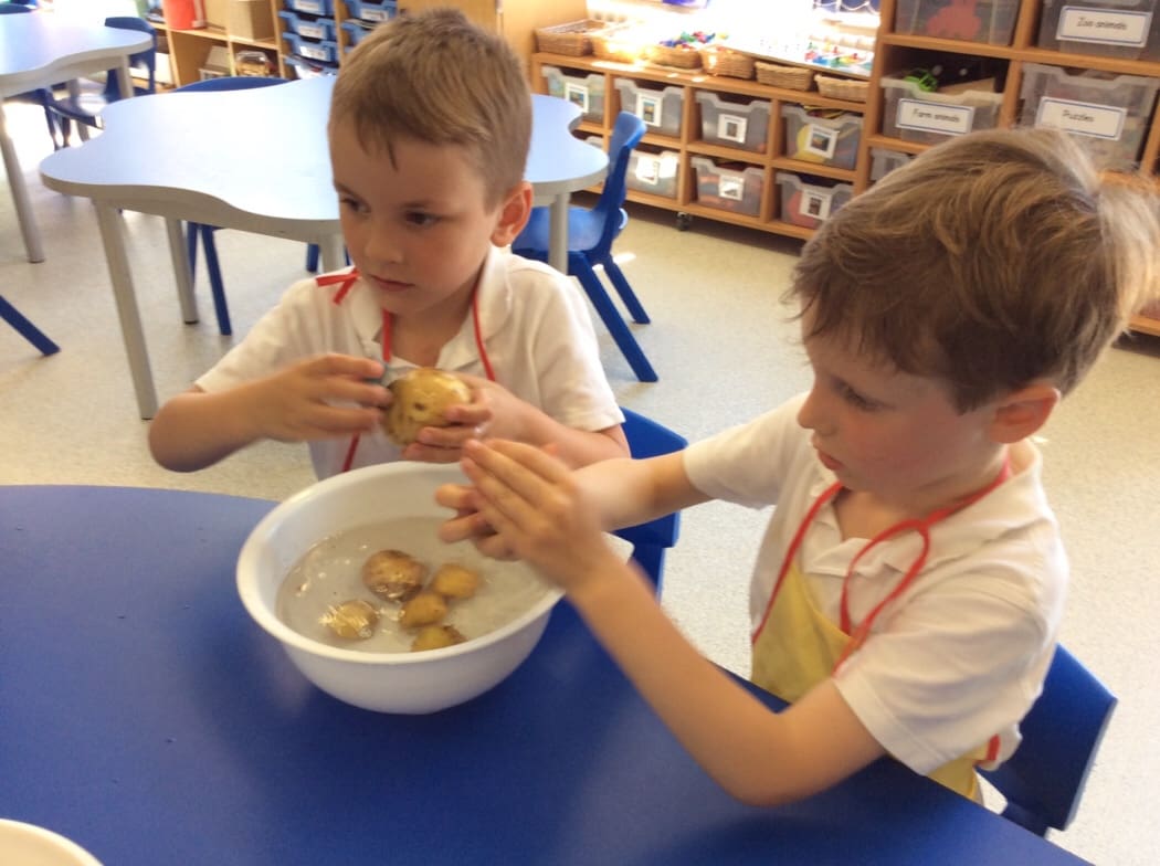 Conker Class dug up the potatoes they planted this week. They were very excited to find out they had one hundred and ten. They then had a busy afternoon cleaning them and preparing them to be cooked in four different ways. They used a simple chart to record which they liked the best when they compared the results.