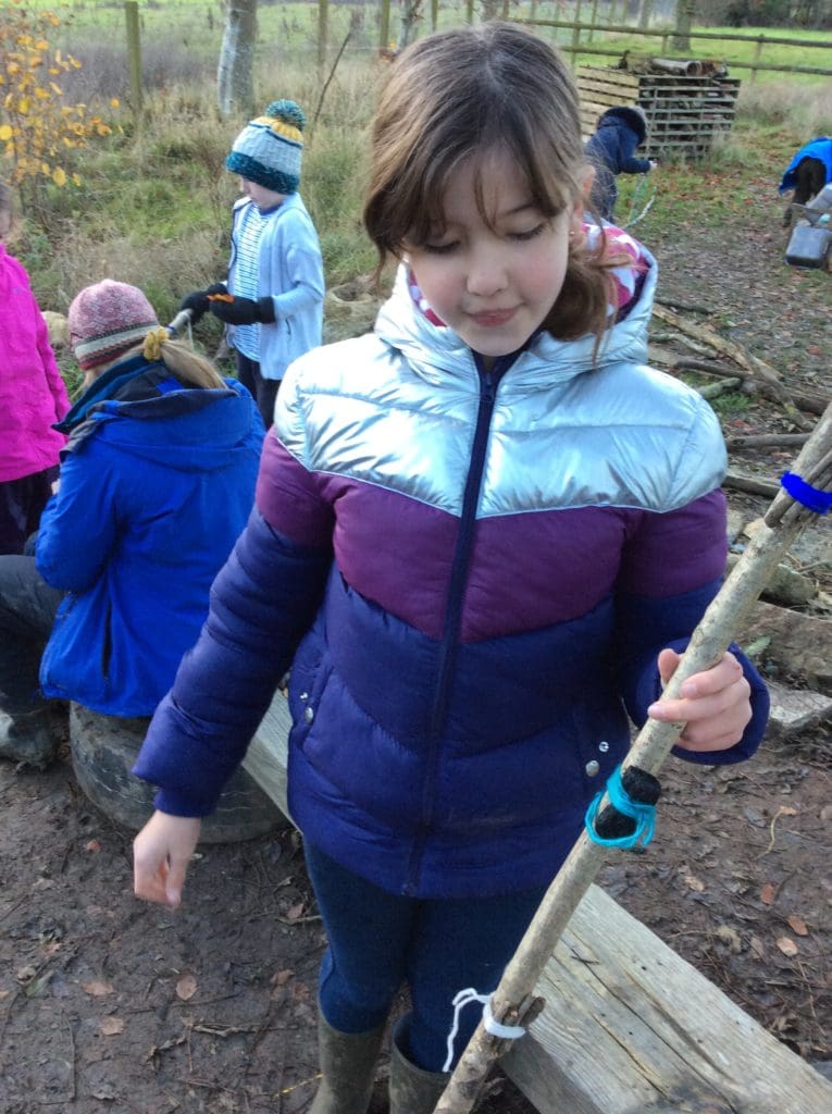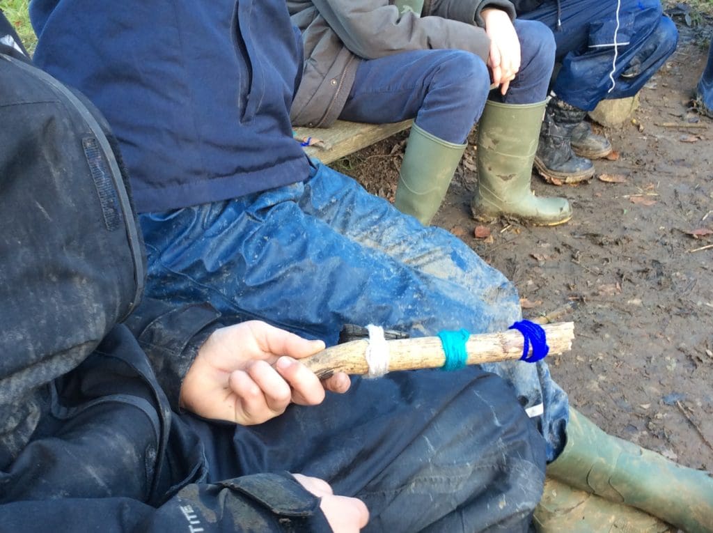 The children then created story sticks. Some good knot-tying secured the wool that, in turn, secured items to the stick that would help the children remember the stories they made up. It will be interesting to see how well they remember their stories next week..