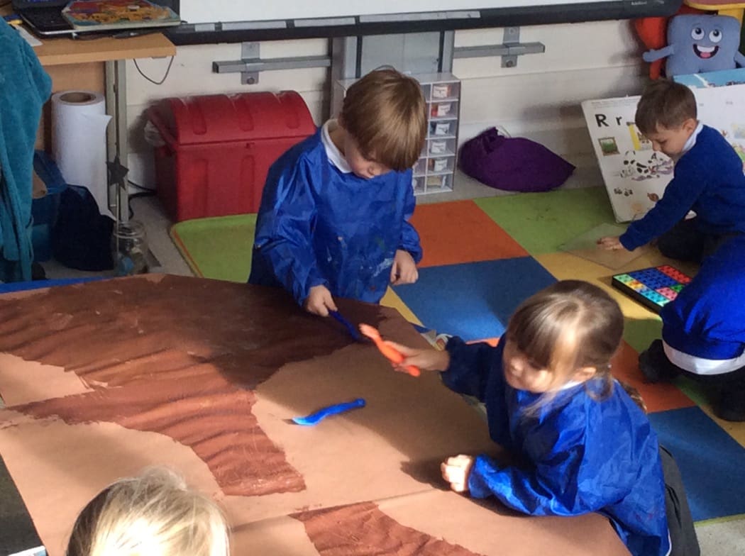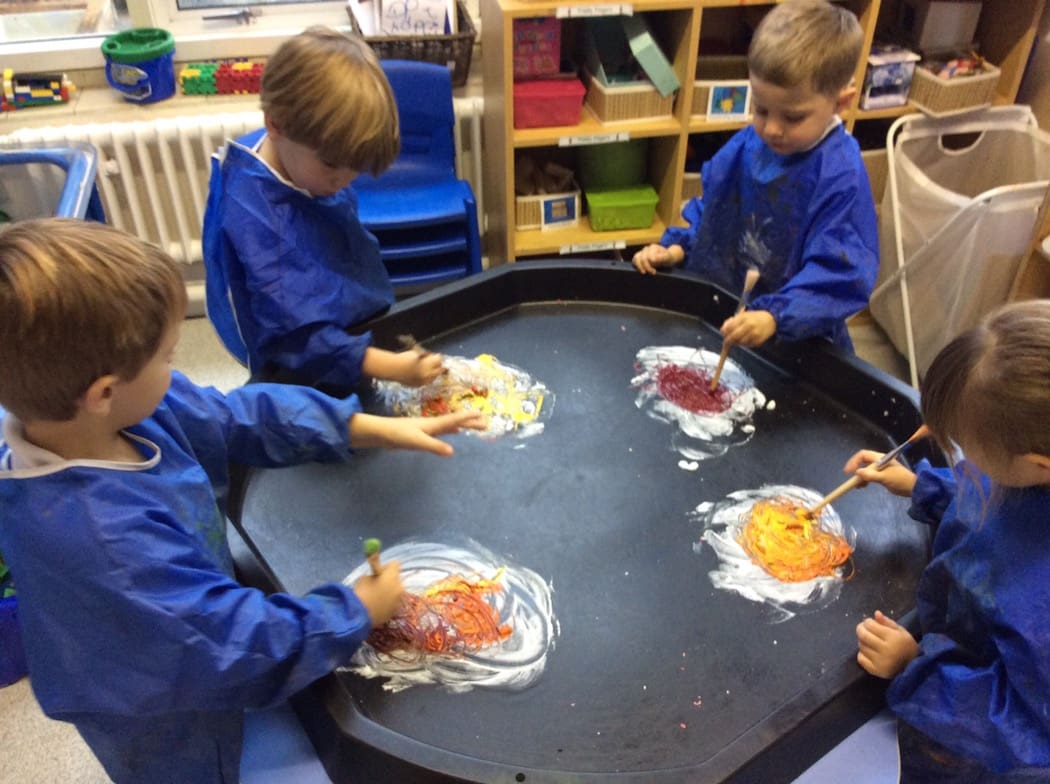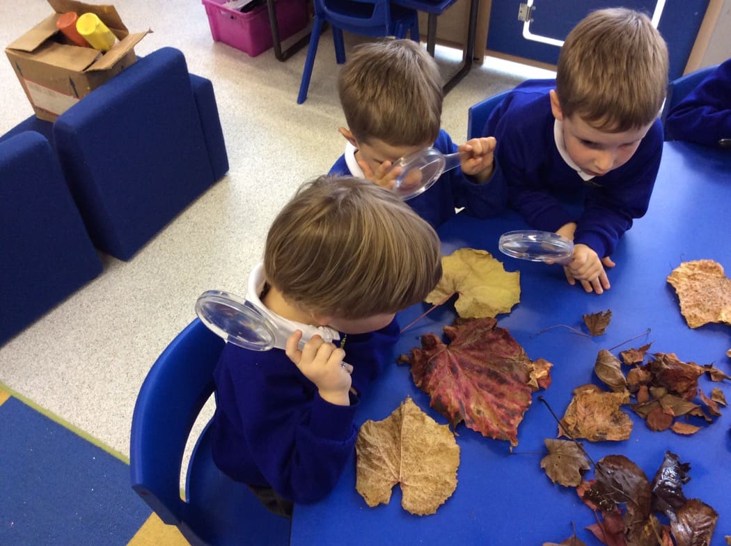 Conker Class have been learning about Autumn. They had a close look at the Autumn leaves they collected before exploring mixing foam and paint to print their leaves.