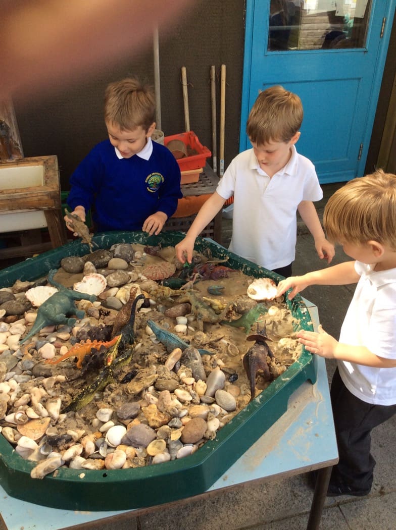 Our topic is Ourselves and we have been talking about what we like. We have been changing our classroom to include things we are interested in. We have made a potion lab outside. We made a dinosaur land. Now we are making a super hero camp.