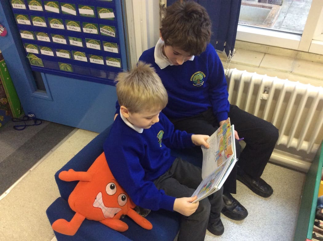 Reading with Oak Class Reading with Oak Class February 3, 2017 Ailsa Boardman Hirst Year 5 and 6 came in to listen to us read. They then read us as story.      Categories:Conkers activities