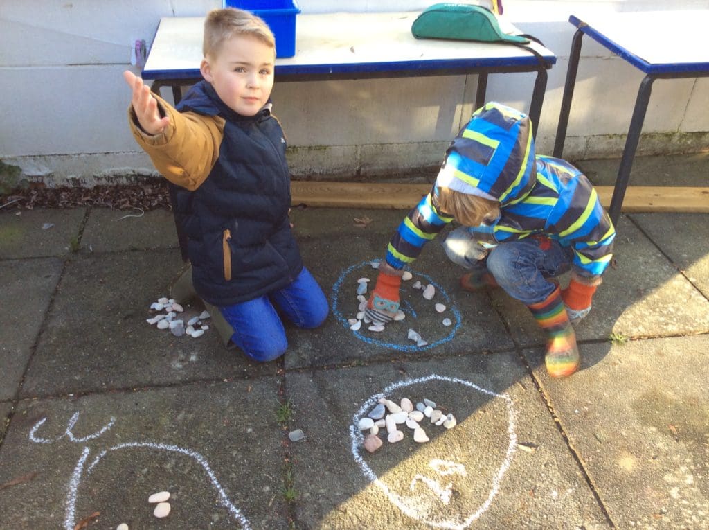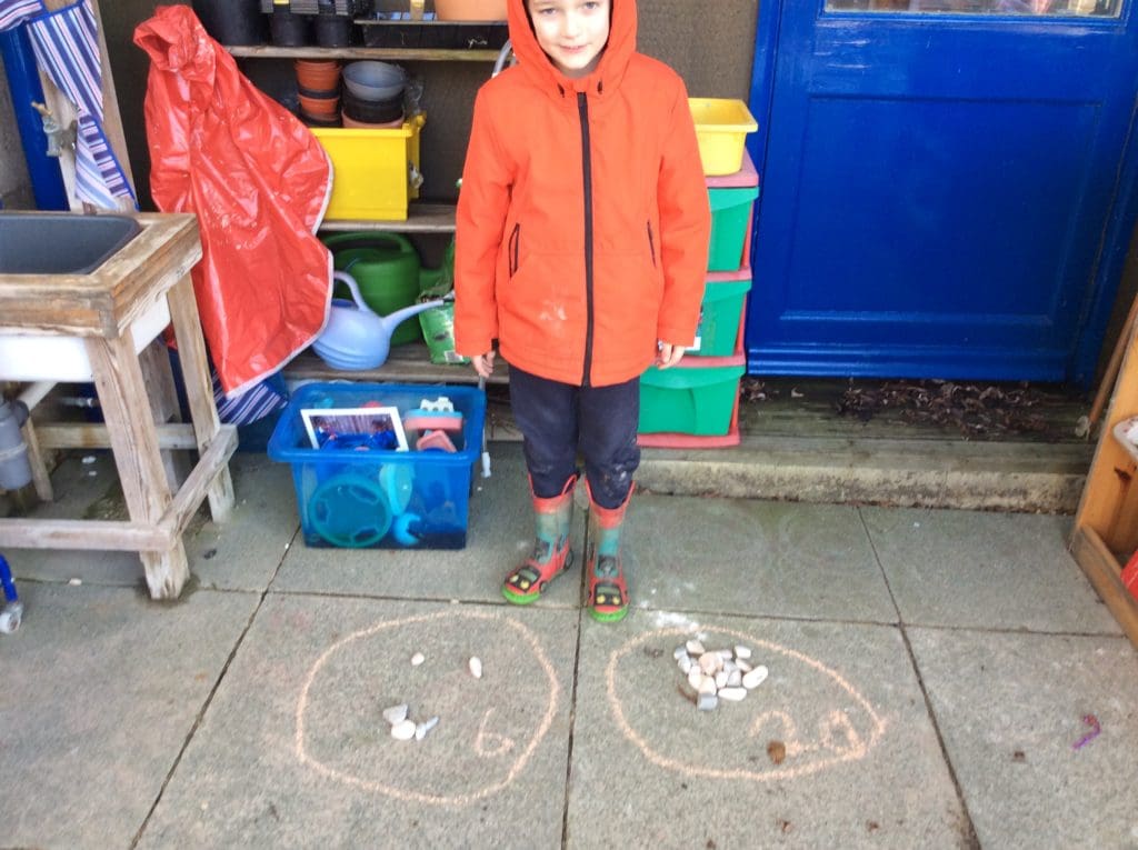 Outdoor learning is so much more than learning about the natural world. The children have the opportunity outside to test all their curriculum skills in all sorts of different ways. Today reception and year 1 are counting.