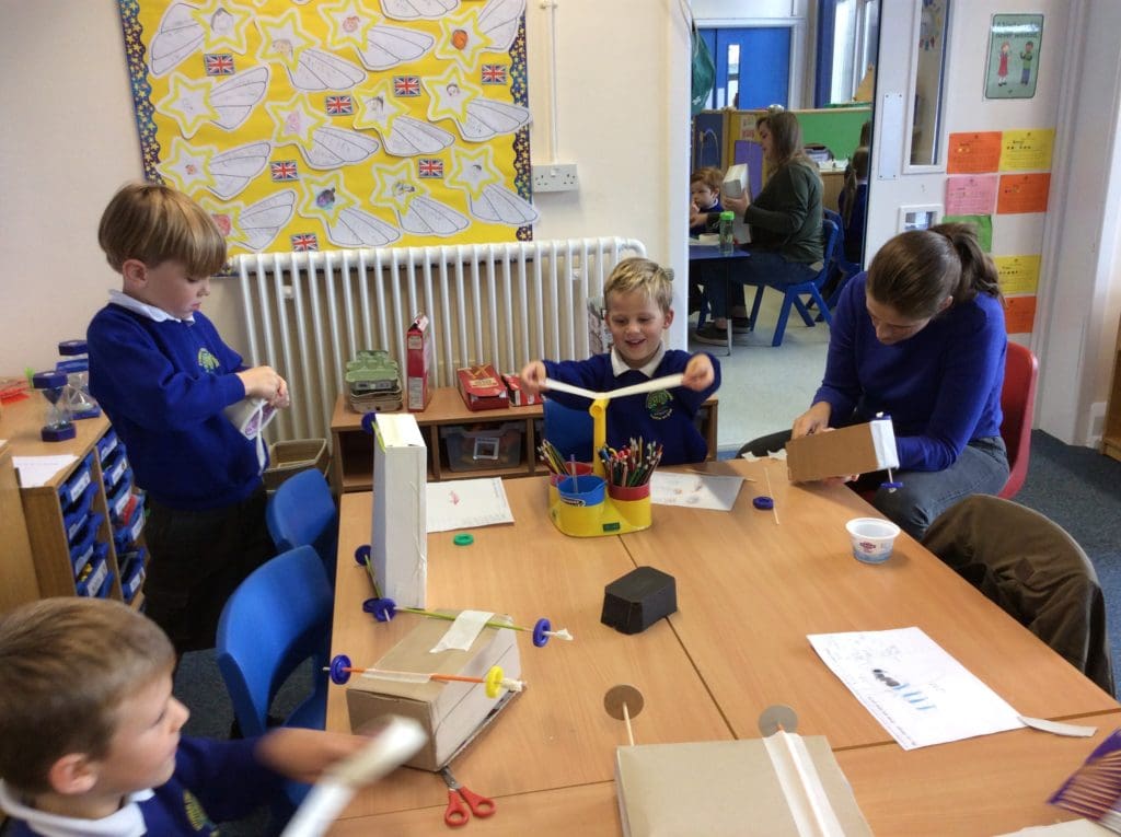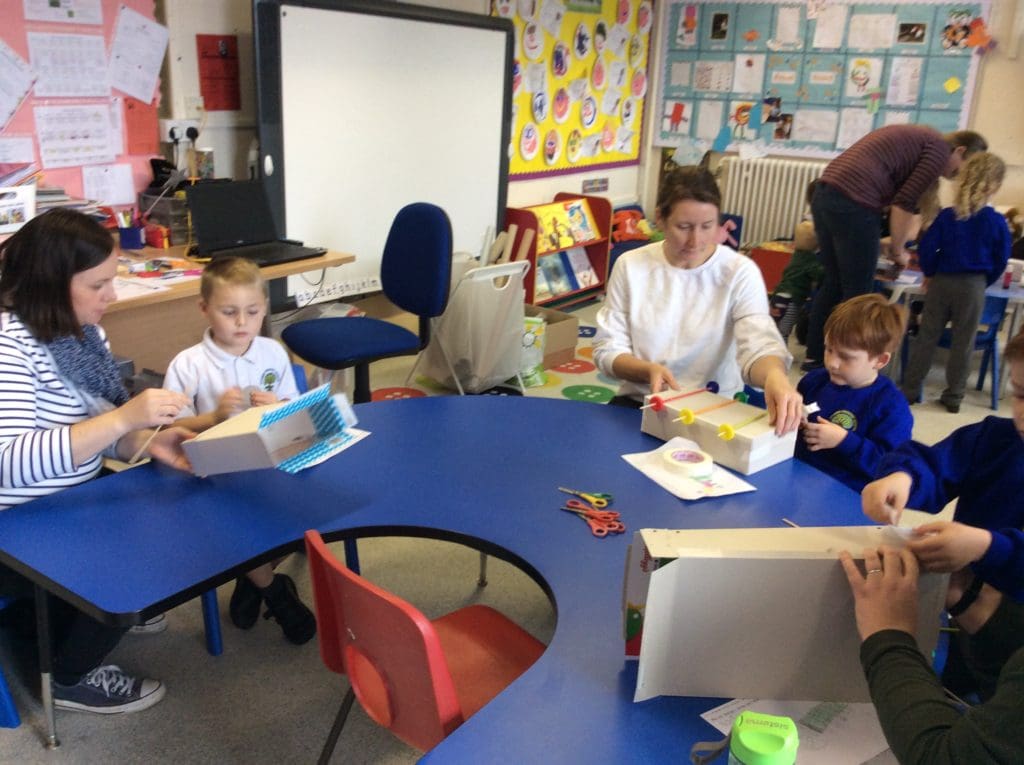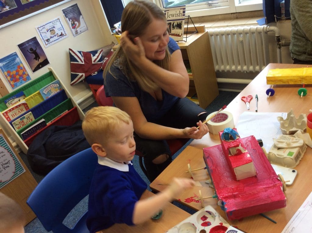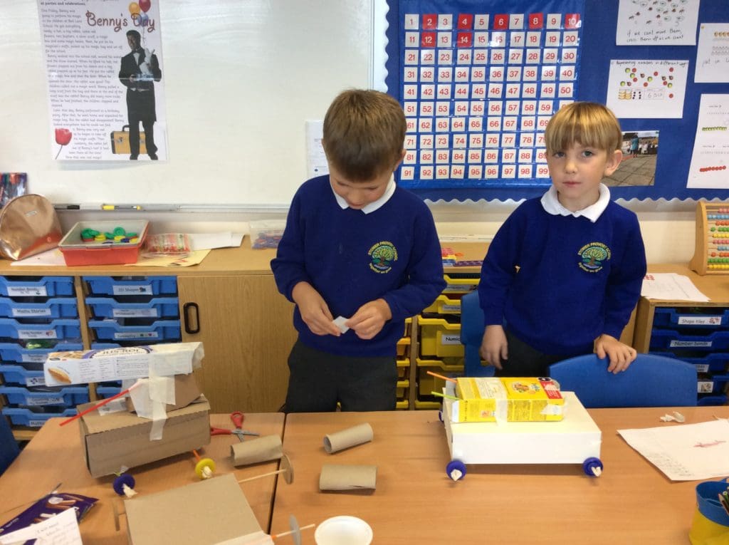 We had super fun in Hazel class this morning with the help of some parents and carers. The children used their vehicle designs to help them to make a moving vehicle using cardboard boxes. There were some great ideas from tanks to alien cars. The adults helped to add extra sparks of imagination too. The end results were amazing, the children (and adults) were super proud of their creations!