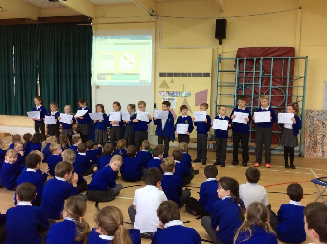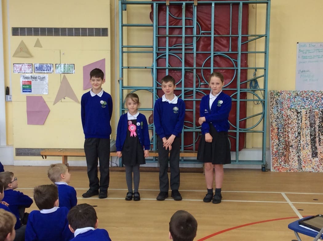 We finished our assembly by singing Happy Birthday to Thomas, Libby, Alfie and Martha.