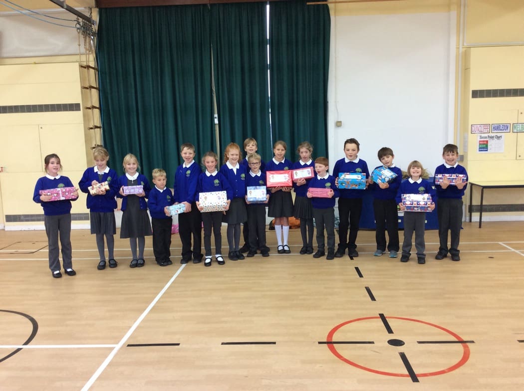The children who brought in shoe boxes with their gifts ready to be collected by the Rotary Club. They will make Christmas a little brighter for less fortunate children.