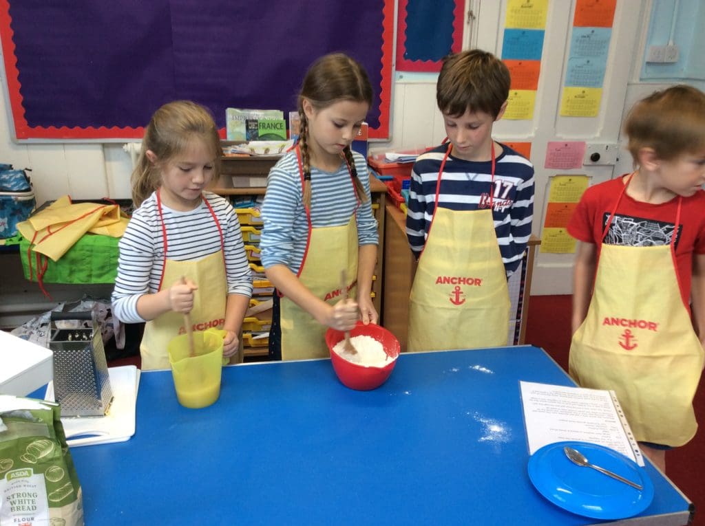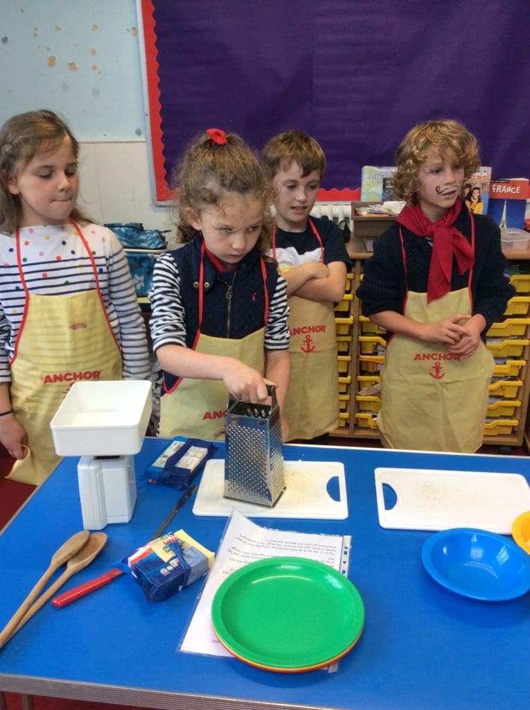They took part in making a flamiche which is a recipe from Northern France, watching a chef demonstrate how to chop vegetables in different ways, researched a region of France to compare with Dorset and had an extra French session with Mrs Batten.